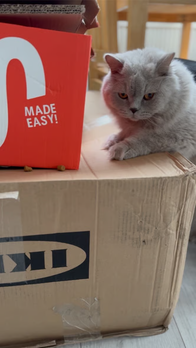I tested this with Moon when I brought anything new in the house - usually large boxes or shopping bags. He was scared of the noise and size at first and hid in the corner. I sat on the floor and just blinked slowly at him, ignoring the boxes and let the bubble wrap noise quieten. Within 3 minutes, he came out of the corner and walked over to sniff everything. He wasn't looking at the boxes and bags; he was looking at me to see if I was scared.