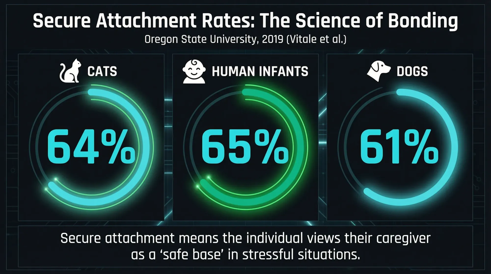 A 2019 study by Kristyn Vitale at Oregon State University applied the "Secure Base Test"—originally designed for human babies—to kittens. The results challenged existing dog-centric models of affection: