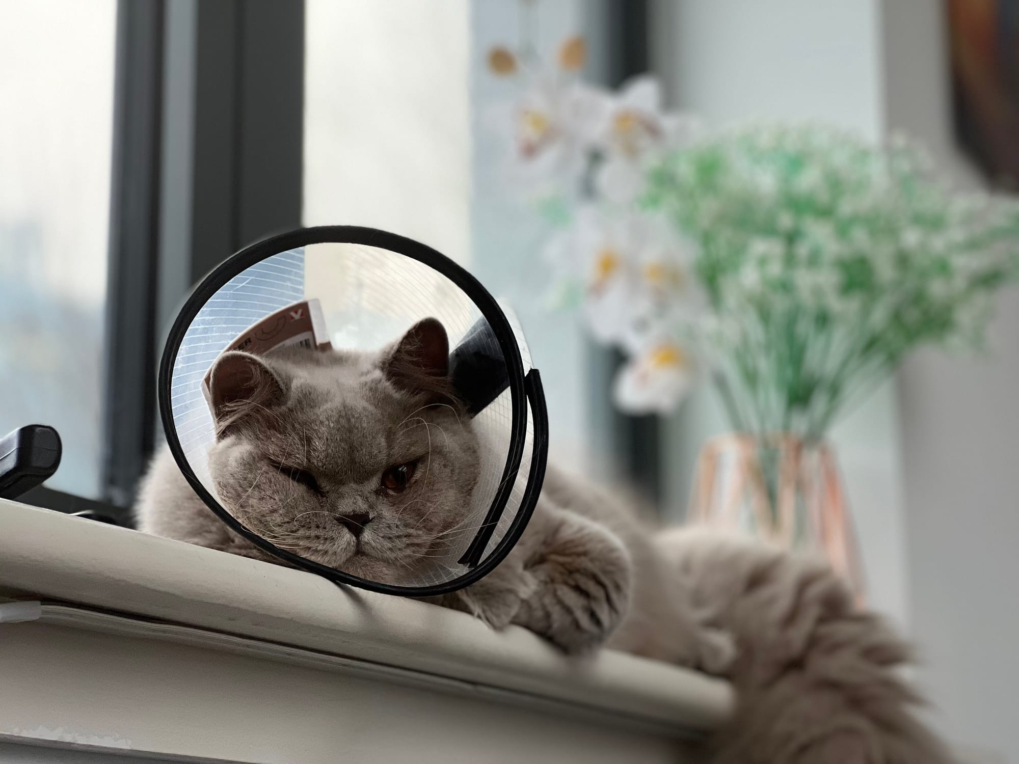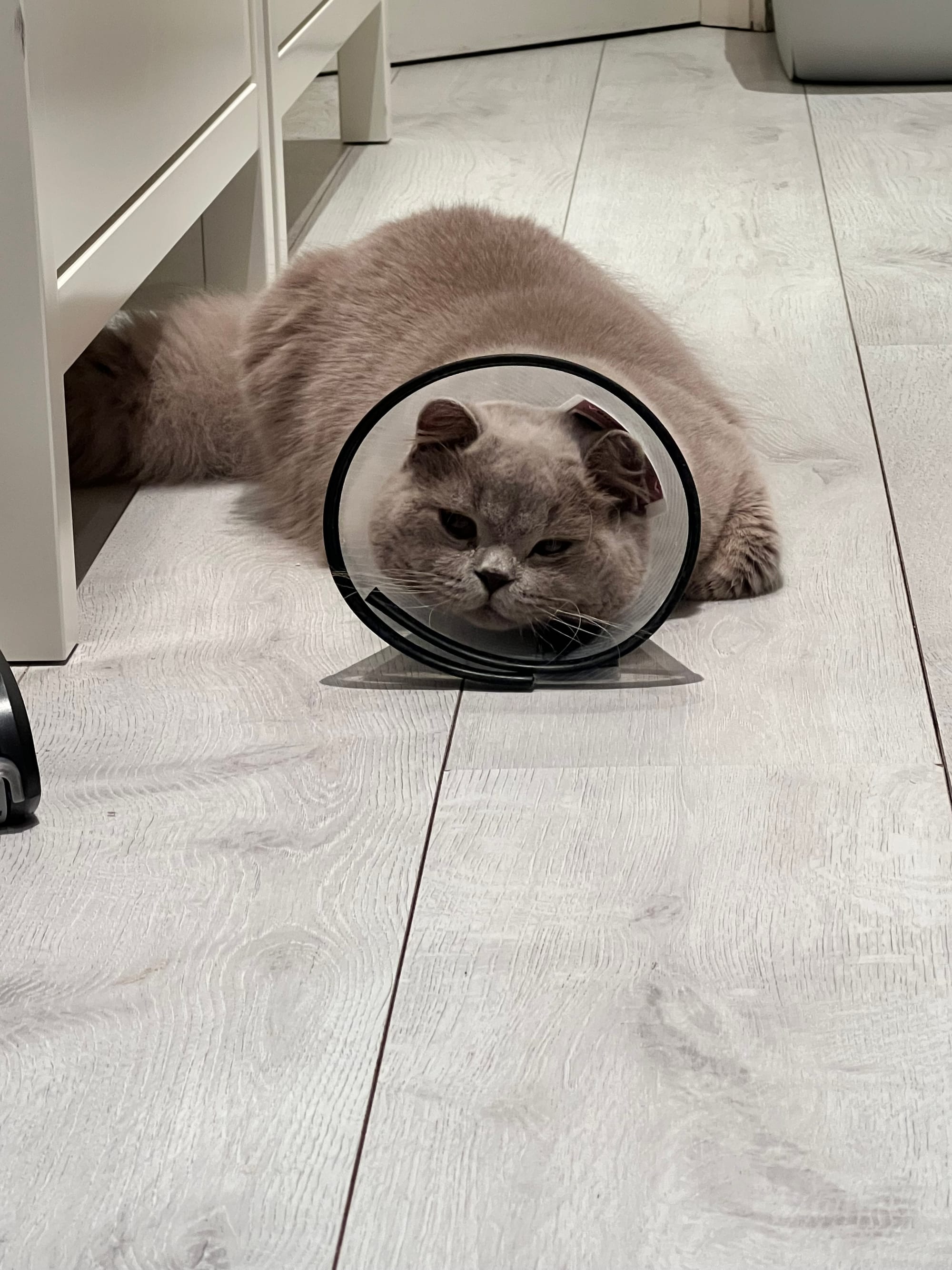 Moon after his neutering. He was very glad to see the last of the cone!