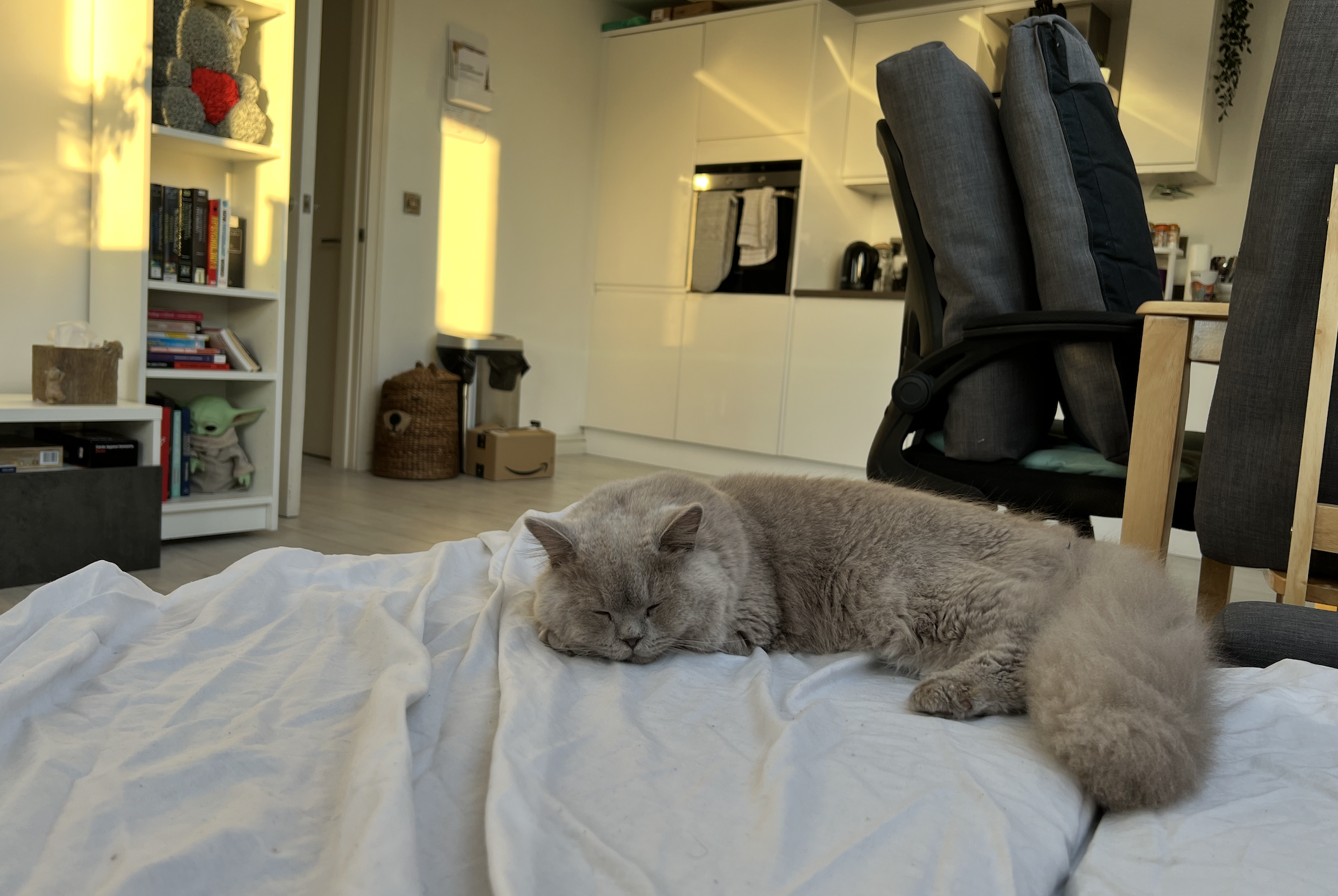 When I returned from a five-day trip, Moon spent the first night sleeping directly on my chest rather than his usual spot at my feet. He also spent nearly ten minutes intensively sniffing my luggage and the clothes I had been wearing. By the third night, he returned to his normal sleep position. The scent reconnection period seemed to take approximately 48-72 hours.