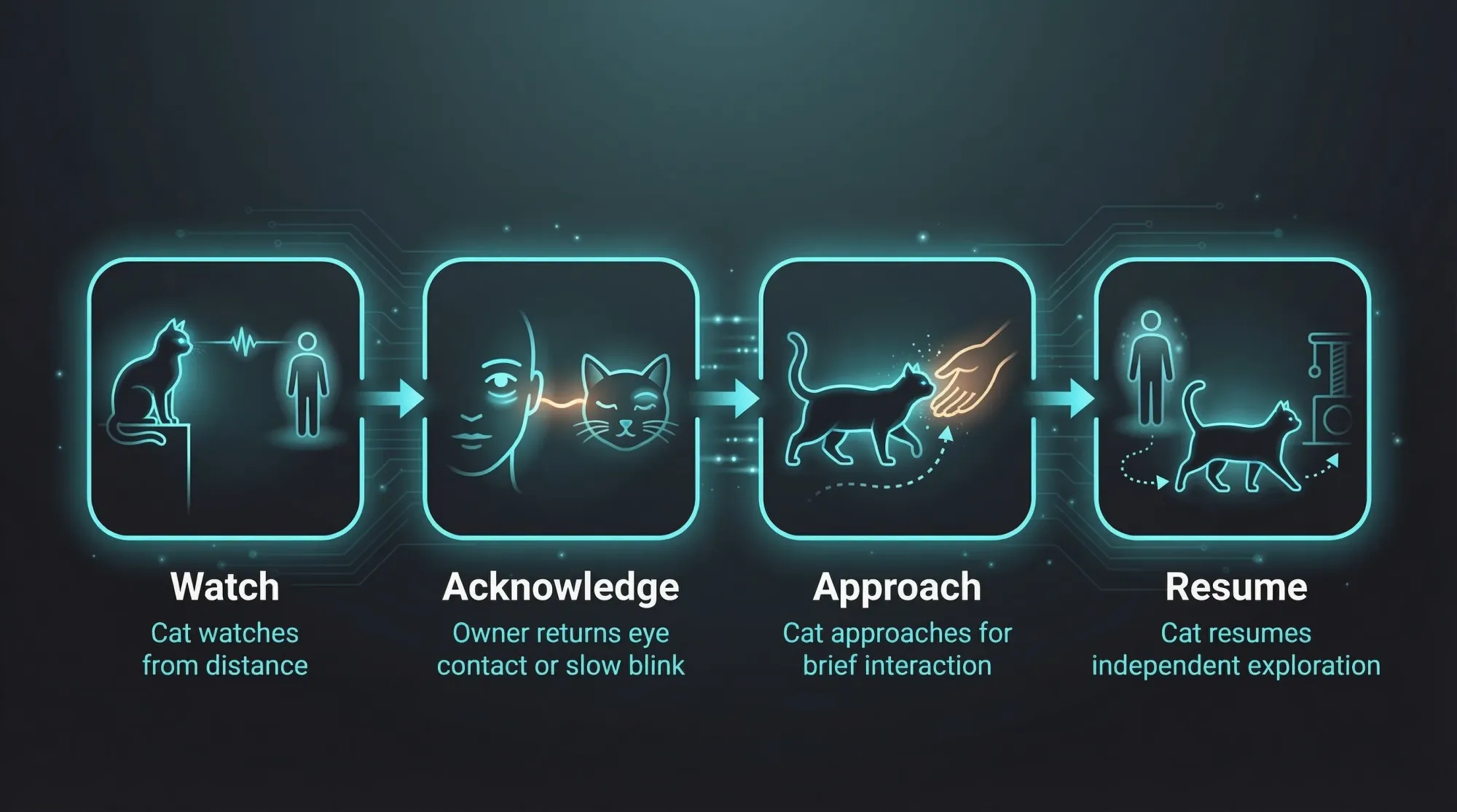 - Evolutionary Basis: Cat watching behavior stems from 10,000 years of territorial surveillance instinct, now redirected toward caregivers as attachment figures.